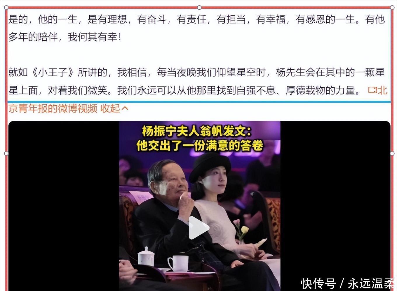 杨振宁身后事!支持翁帆再婚,早已留下后路,老家市民冒雨悼念